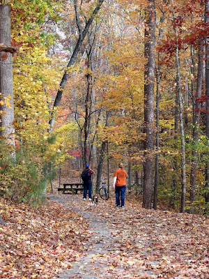 This photo was taken of Keith, Skye, & Wyatt strolling along Lake Pine trail last year…..